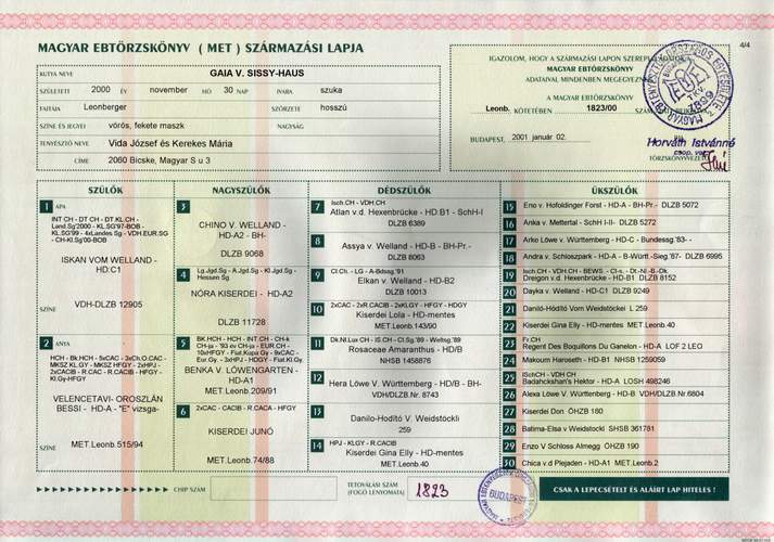 AZONOSÍTÁSKÉNT CHIPEZVE VANNAK, A CHIPSZÁM A TÖRZSKÖNYV ALJÁRA VAN RÁRAGASZTVA