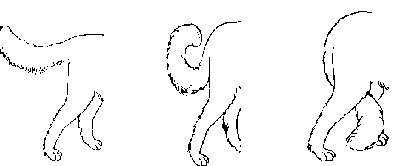gyűrűző farok , göndör vagy erősen hullámos szőr , színhibák,
