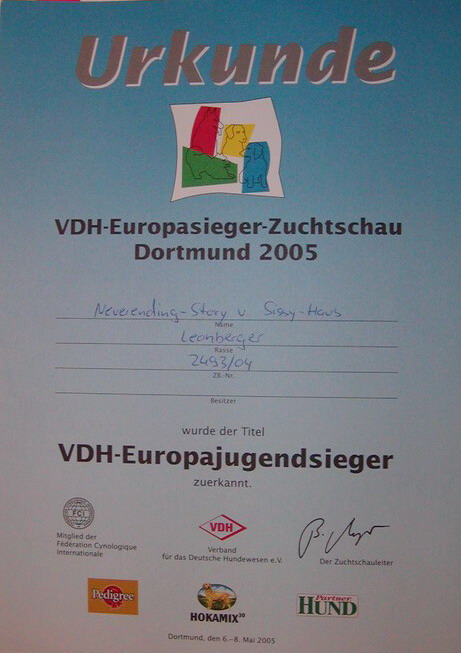Jugendklasse Sg 1, VDH-Europajugendsieger