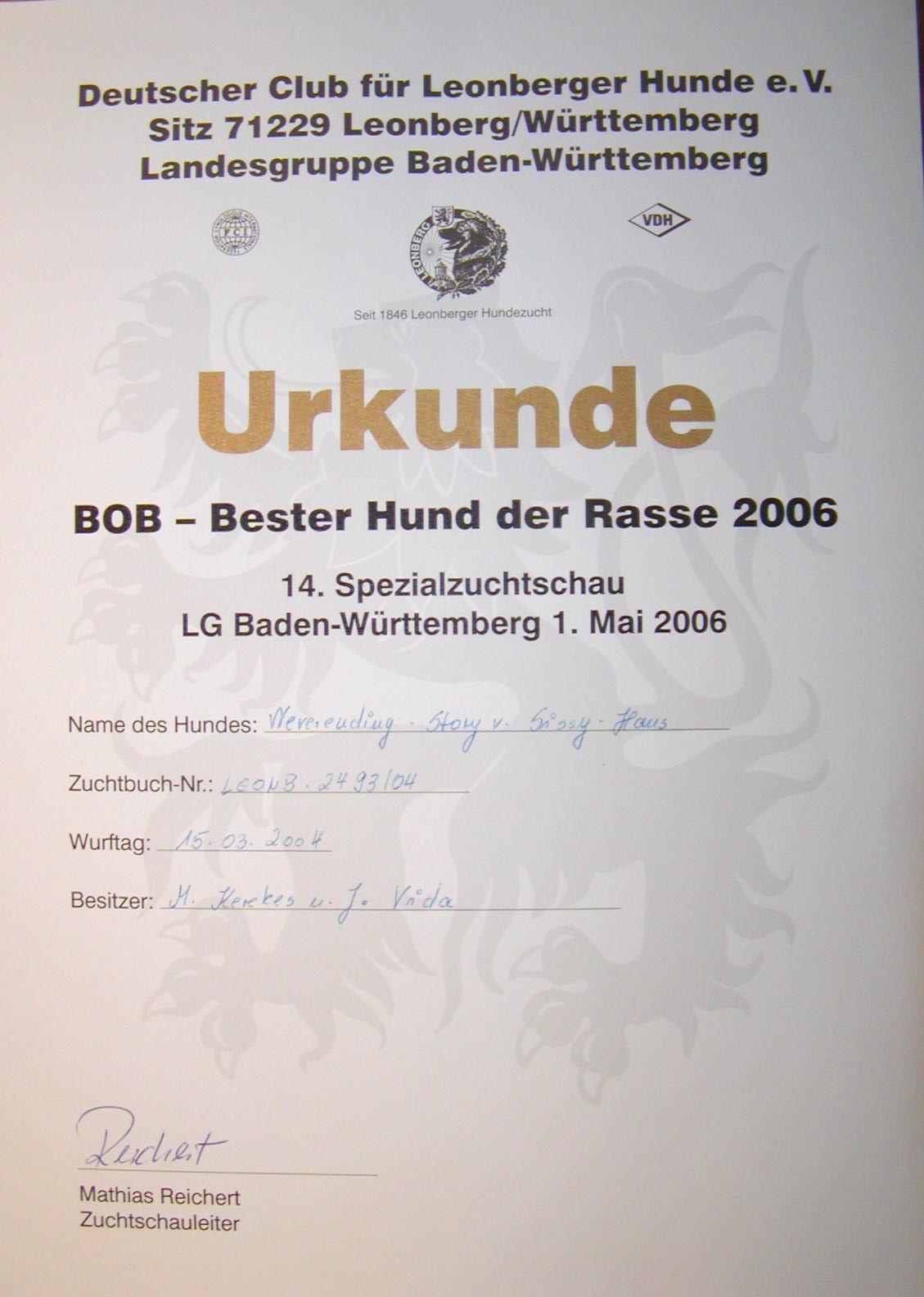 | 2006 Stuttgart CACIB | Offene Klasse | Vorzüglich 3 | Gerhard Knape (D) | |