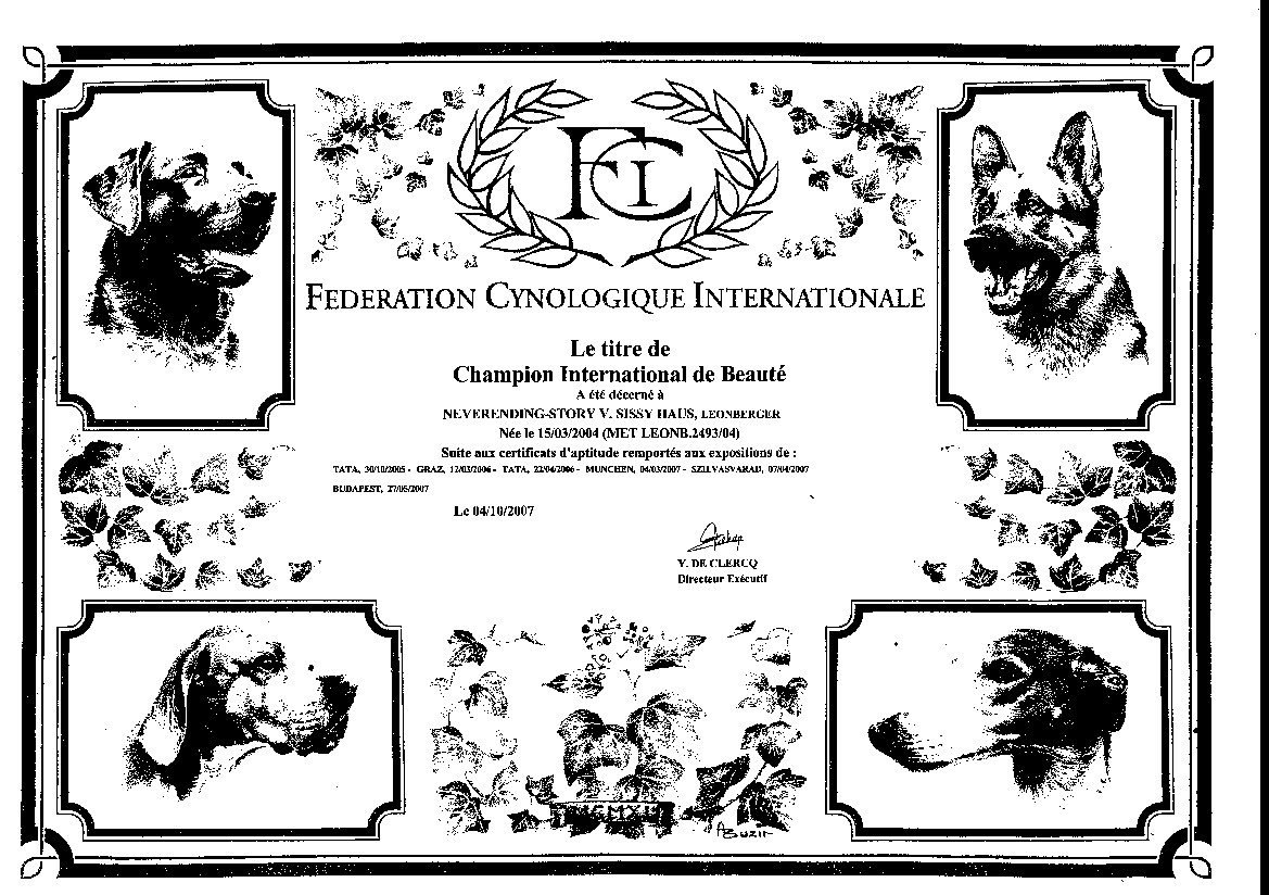 | 2007 Budapest CACIB | Offene Klasse | Vorzüglich 1, CAC, CACIB, BOB | Paul Baelen (B) | |