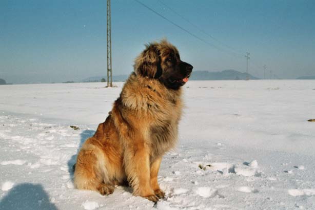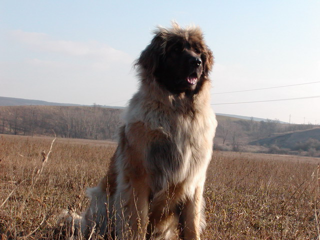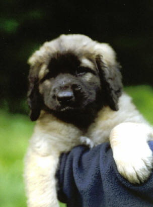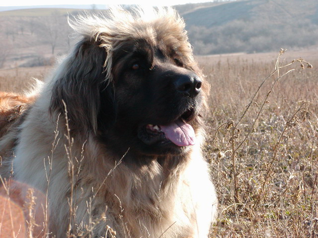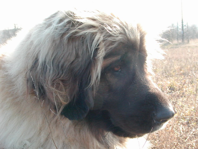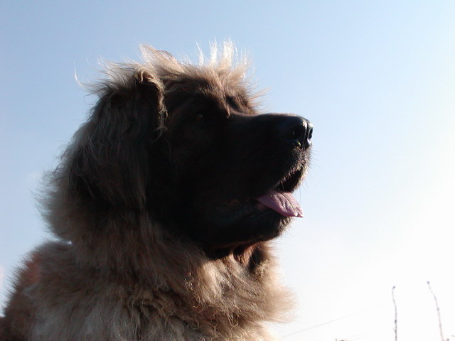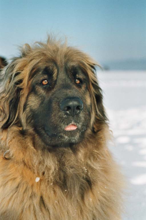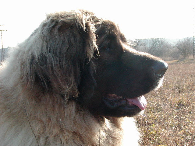 Leonberger-Hündinkopf mit den einzigartigen weichen Haaren am Oberkopf !