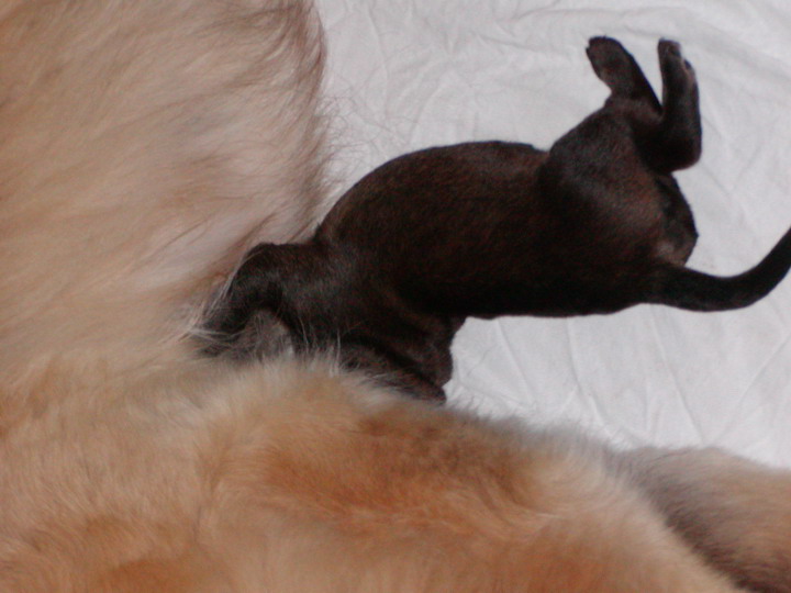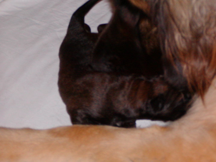 hier bin ich 4 Tage alt. Meine Mutti versorgt mich