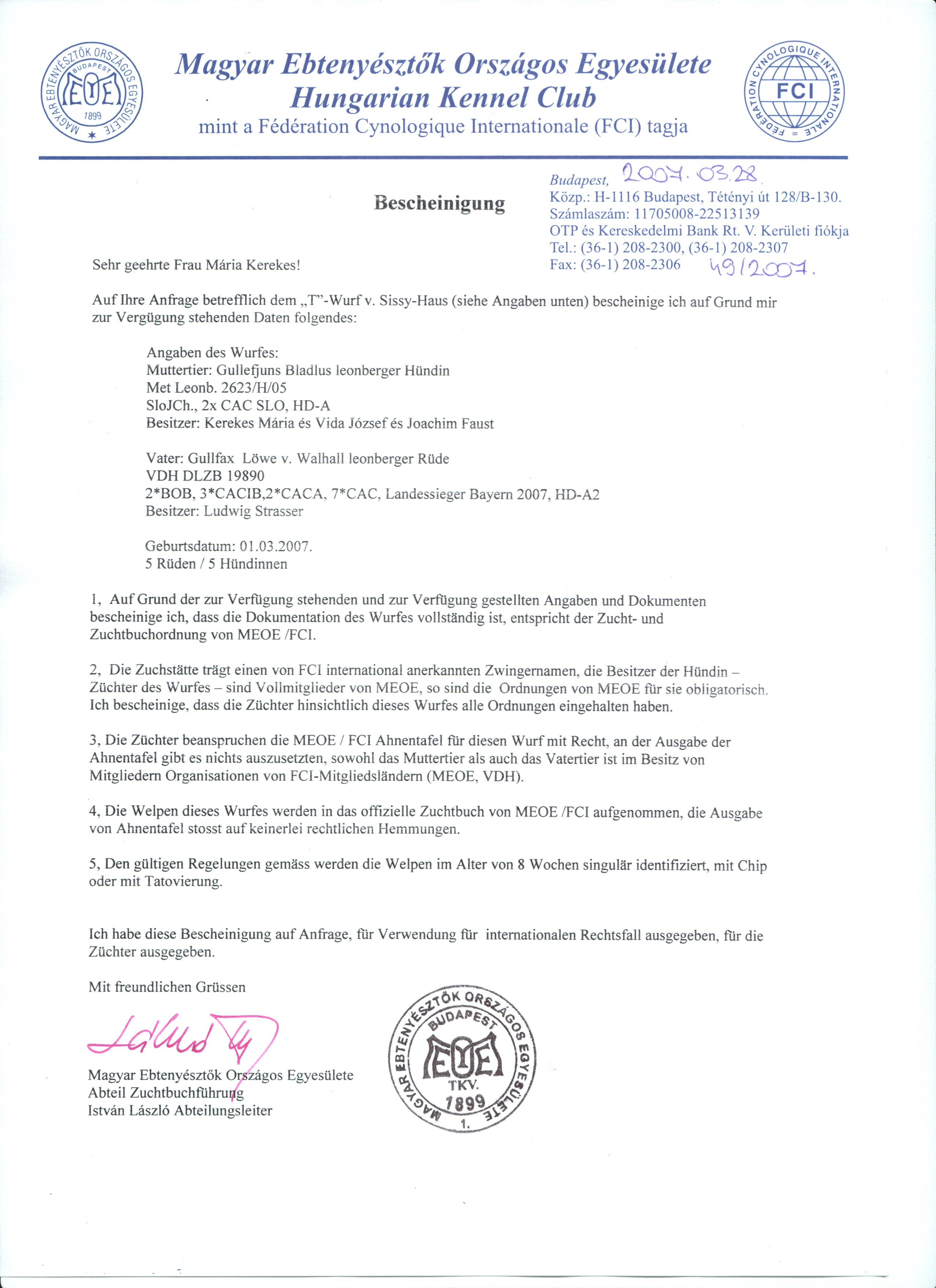 bis heute nicht erfolgt, somit veröffentlichen wir hier die Bescheinigung